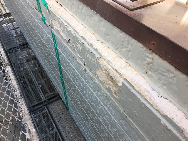 外壁塗装の塗膜が劣化し、一部剥がれてしまっていたり、亀裂が入っている状態です。