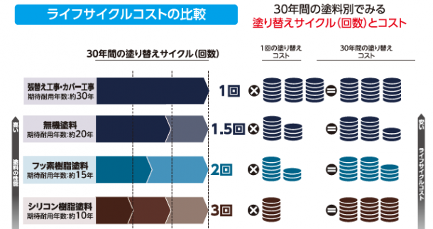 耐用年数が短い塗料は、その分塗り替え回数が多くなるので