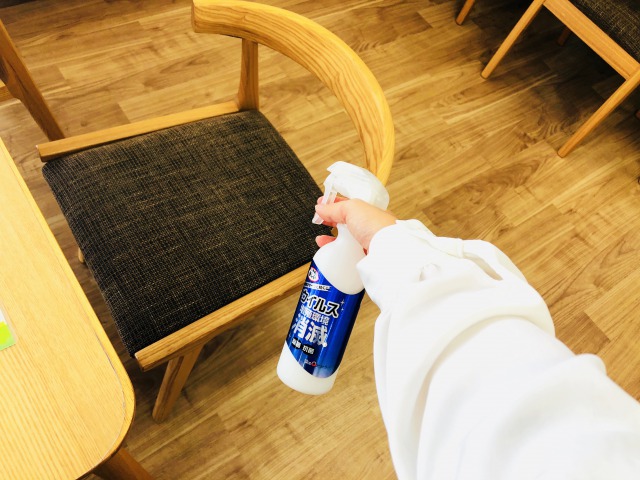 接触感染を防ぐために触れる機会の多い、手すり・椅子・机等を毎朝除菌しております!