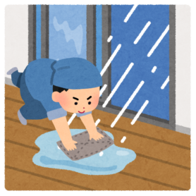 ③窓やサッシからの雨漏りは雑巾やタオルを置く