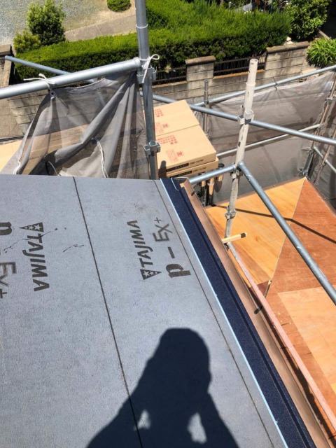 ルーフィングという屋根用の防水シートを敷いていきます✨