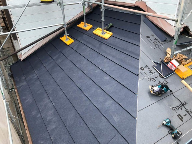 既存の屋根材を撤去し、新しい屋根材を取り付ける工事です✨