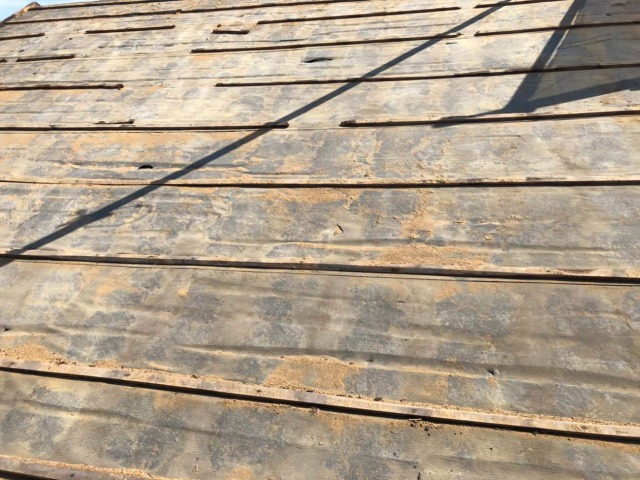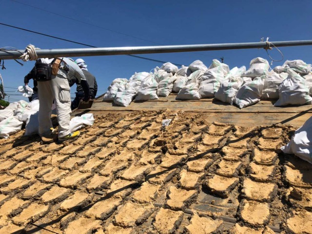 屋根瓦が滑り落ちないように敷かれていた土があらわれます。