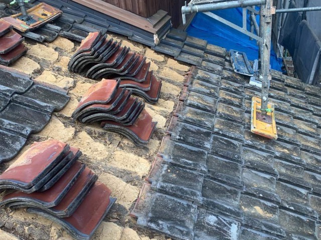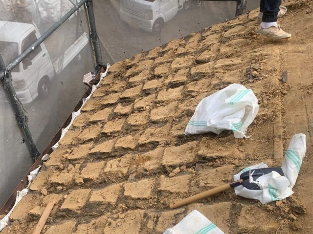 瓦を撤去すると、今まで瓦を固定していた葺き土が出てきます