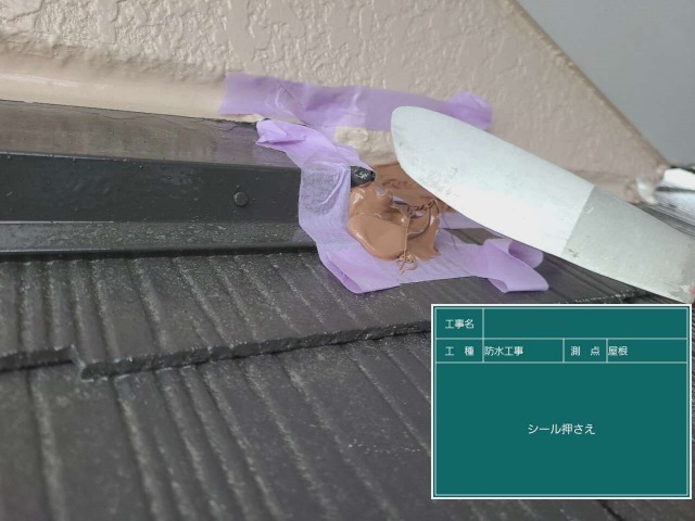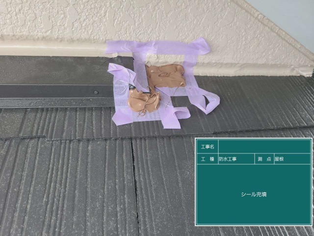 コーキング剤で屋根の隙間を埋めて補修していきます