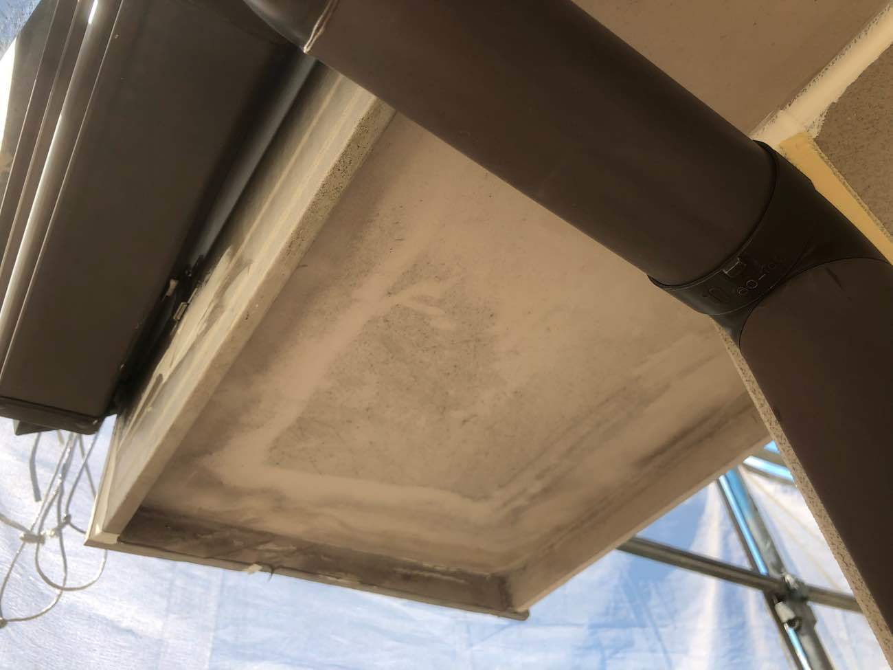 岡崎市I様邸では軒天に写真のような雨染みができていました