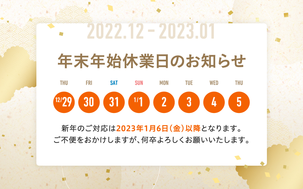 に関しましても、ご対応は1月6日(金)以降となります。