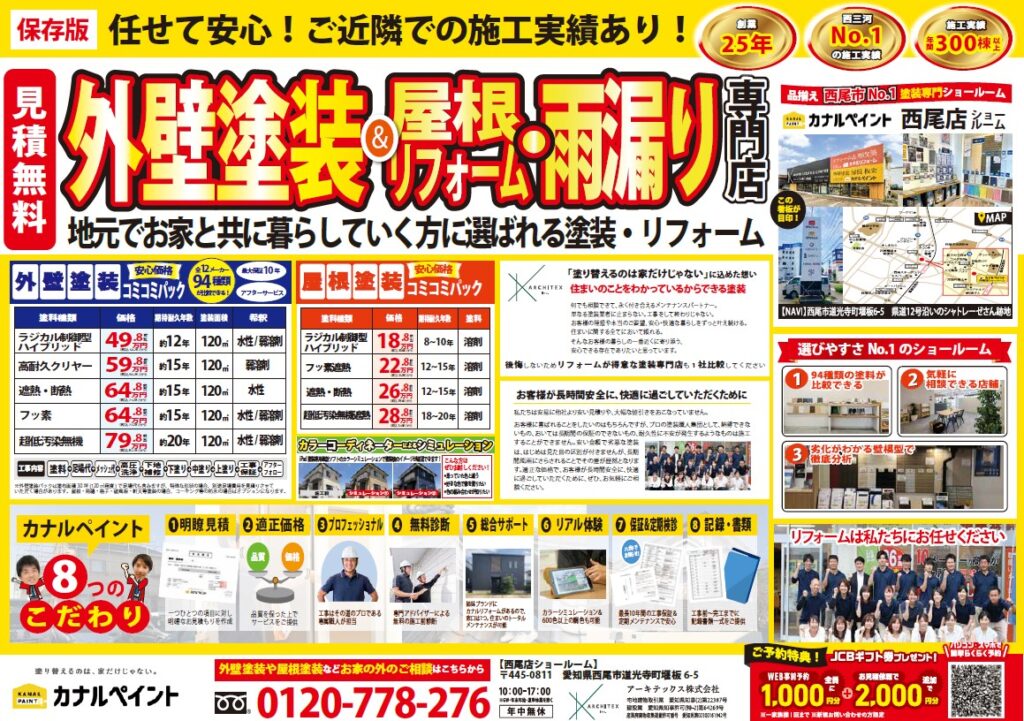 愛知県岡崎市・西尾市の外壁塗装・屋根塗装・防水工事・雨漏り補修の専門店カナルペイントです。