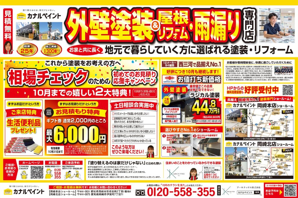10月チラシ|岡崎市・西尾市の外壁塗装専門店カナルペイント|岡崎市・西尾市の外壁塗装専門店カナルペイント