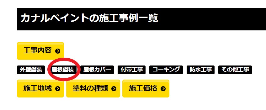 今回のように屋根の塗装について調べたい!という場合は、下記写真のように、施工事例のページから工事内容を絞ることができます✨