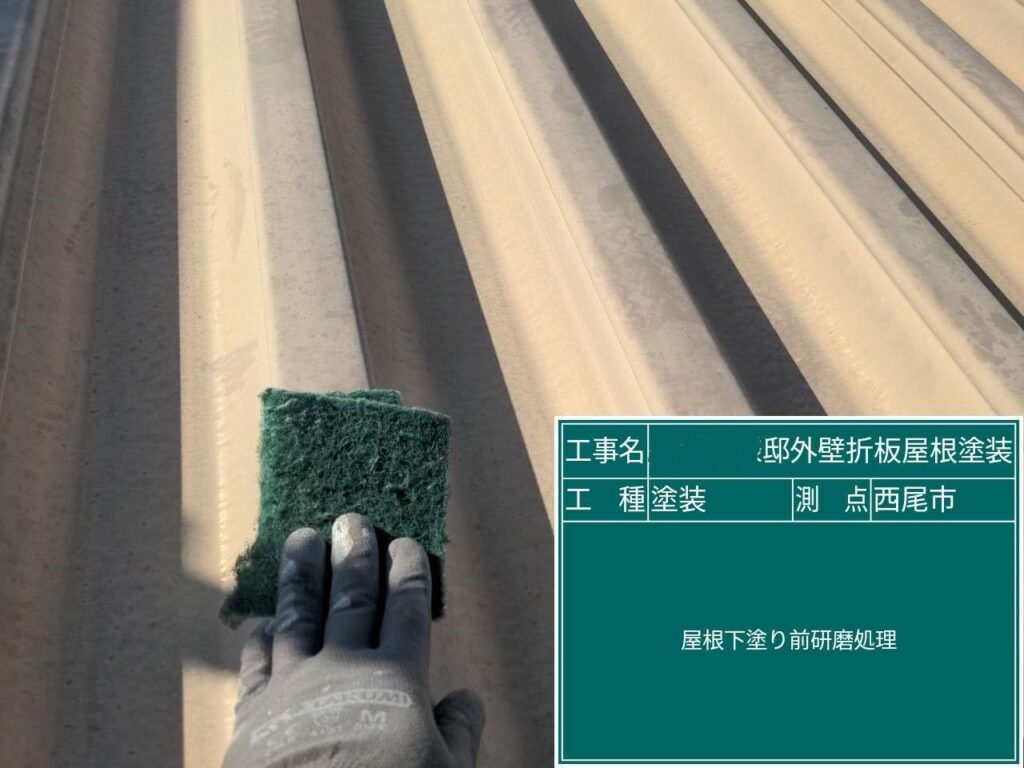 鉄部分にそのまま塗料を塗ると密着度が弱まるため、目に見えないぐらいの細かな傷をつけます。