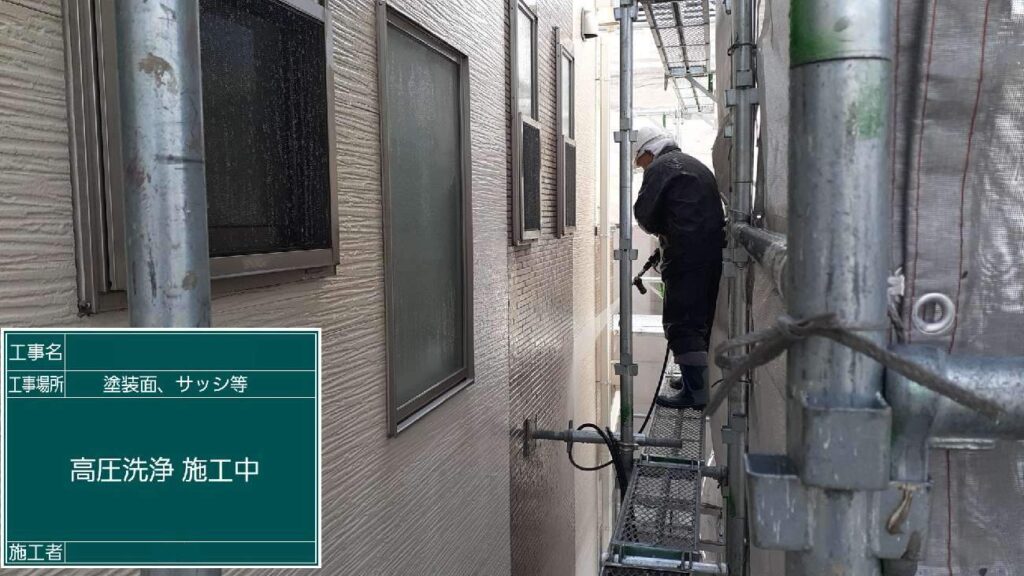 このような汚れは高圧洗浄機などを使って綺麗に落としてから塗装を行います。