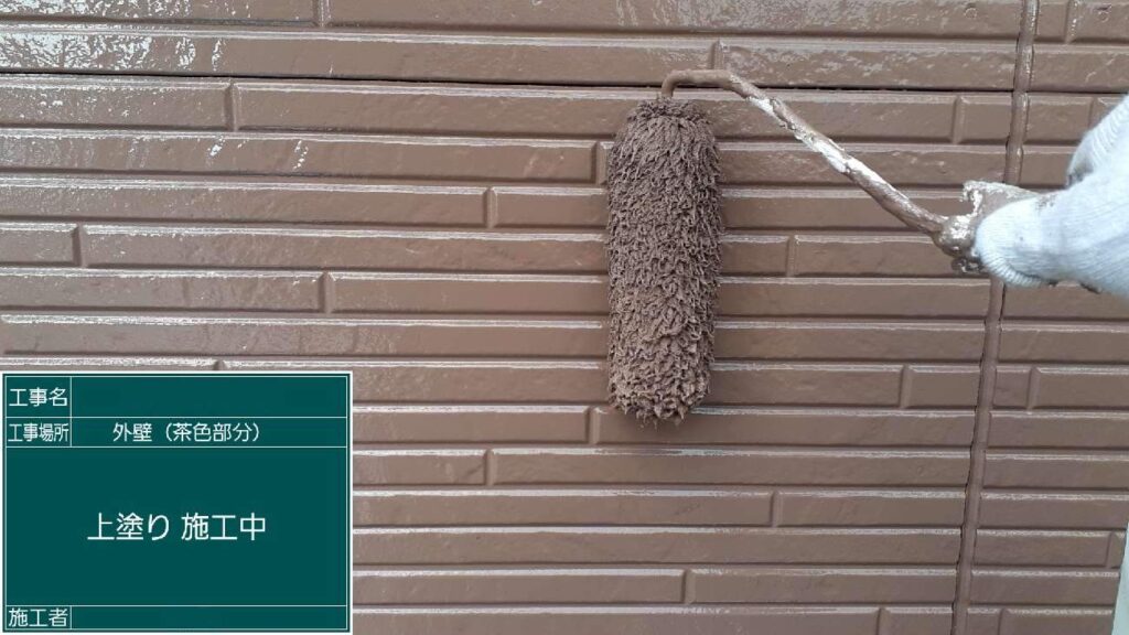 ・中塗りが完了したら、最終的な塗料を外壁に塗布します。この工程が上塗りです。