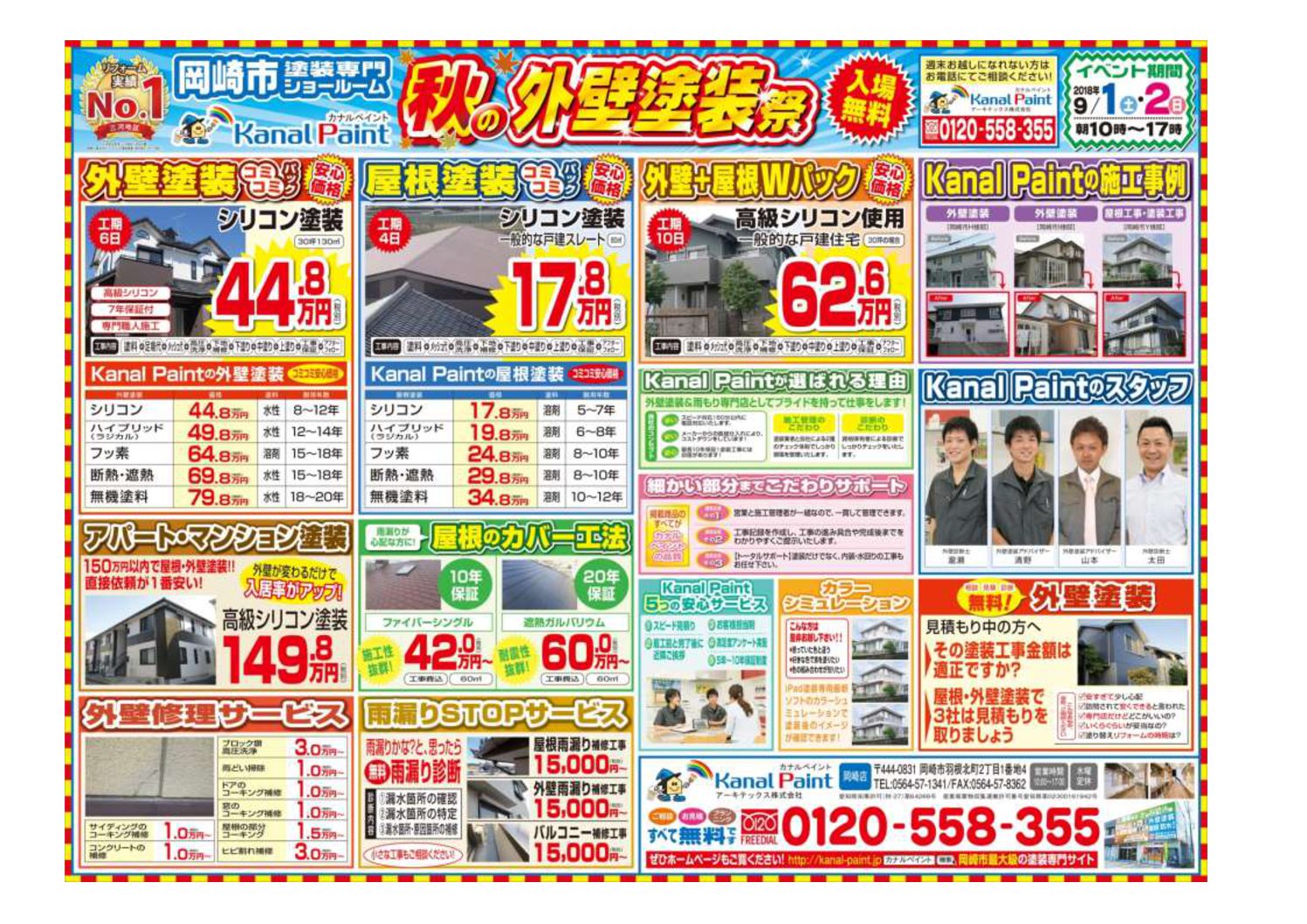 2018.08.24 (Fri) 更新カナルペイント岡崎店『秋の外壁塗装祭』イベントを開催いたします!!