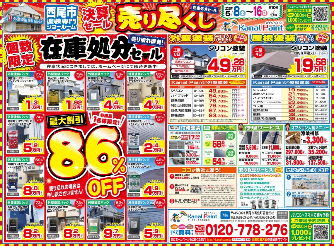 2021.04.22 (Thu) 更新平素より、カナルペイントをご愛顧いただきありがとうございます。