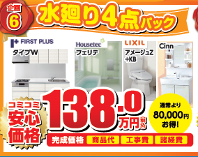 企画4 リフォーム大特価~在庫対応で早期工事対応可!! 最大63%OFF !~