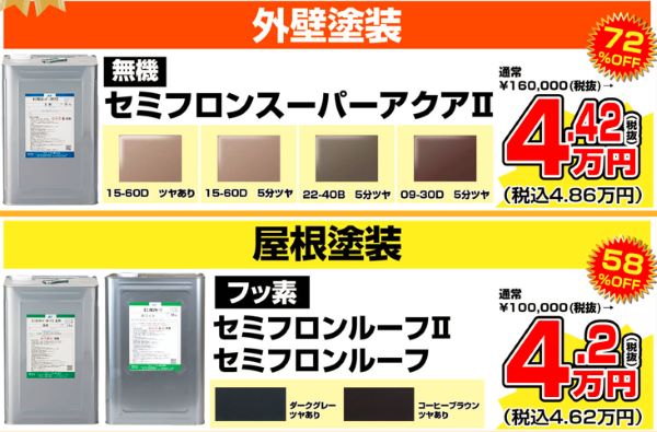 ※1)外壁塗装は20㎡、屋根塗装は80㎡の場合