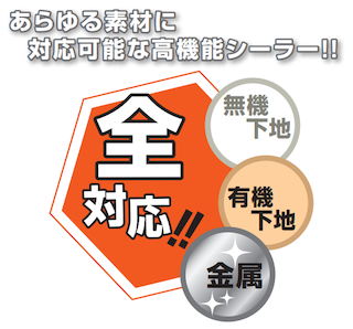 無機、有機ハイブリッド技術により開発された特殊エポキシ樹脂の効果により、従来のモルタル、コンクリート、木部、スレート屋根に加え、サイディングボードや鉄部等あらゆる素材に幅広く対応します。※下記適用下地以外のものは対応できない場合があります。