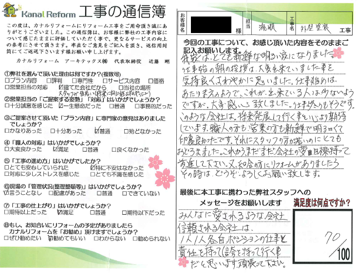 又、知り合いの方にリフォームがありましたらその時はどうぞよろしくお願いいたします。