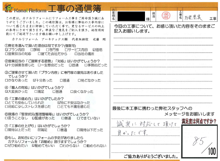 【岡崎市I様】誠実に対応して頂けて良かったです。