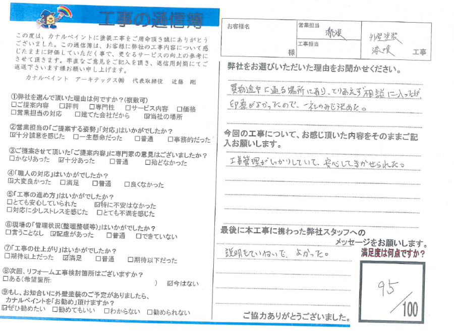 今回の工事について、お感じ頂いた内容をそのままご記入お願いします。