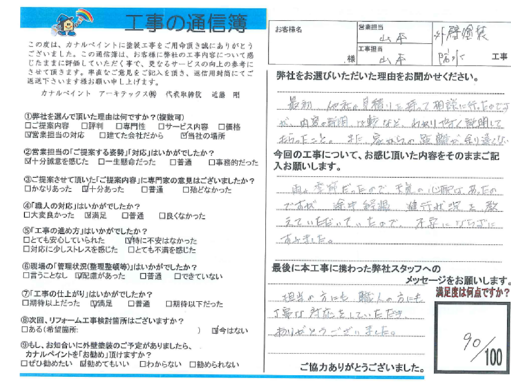 今回の工事について、お感じ頂いた内容をそのままご記入お願いします。