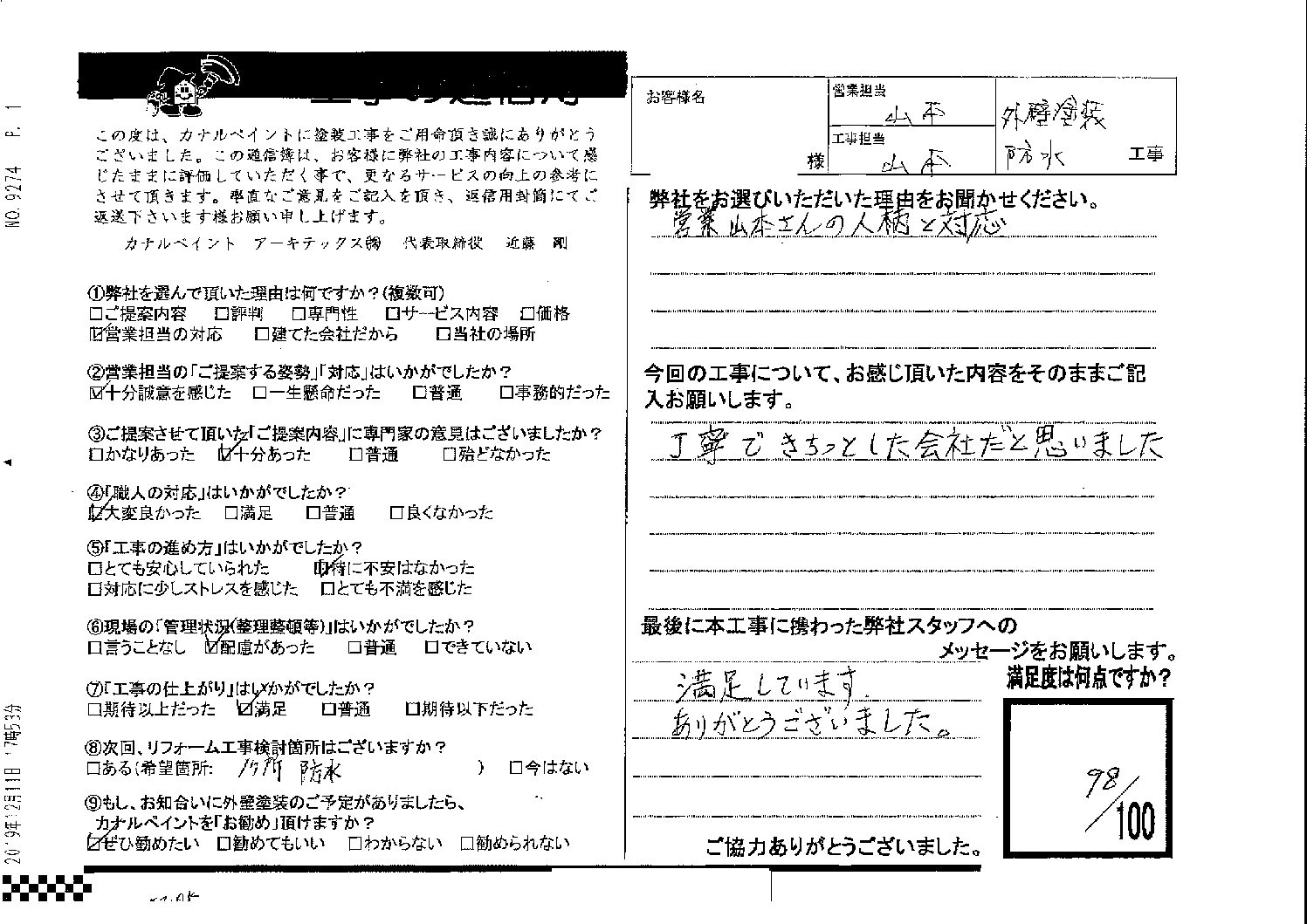 今回の工事について、お感じ頂いた内容をそのままご記入お願いします。