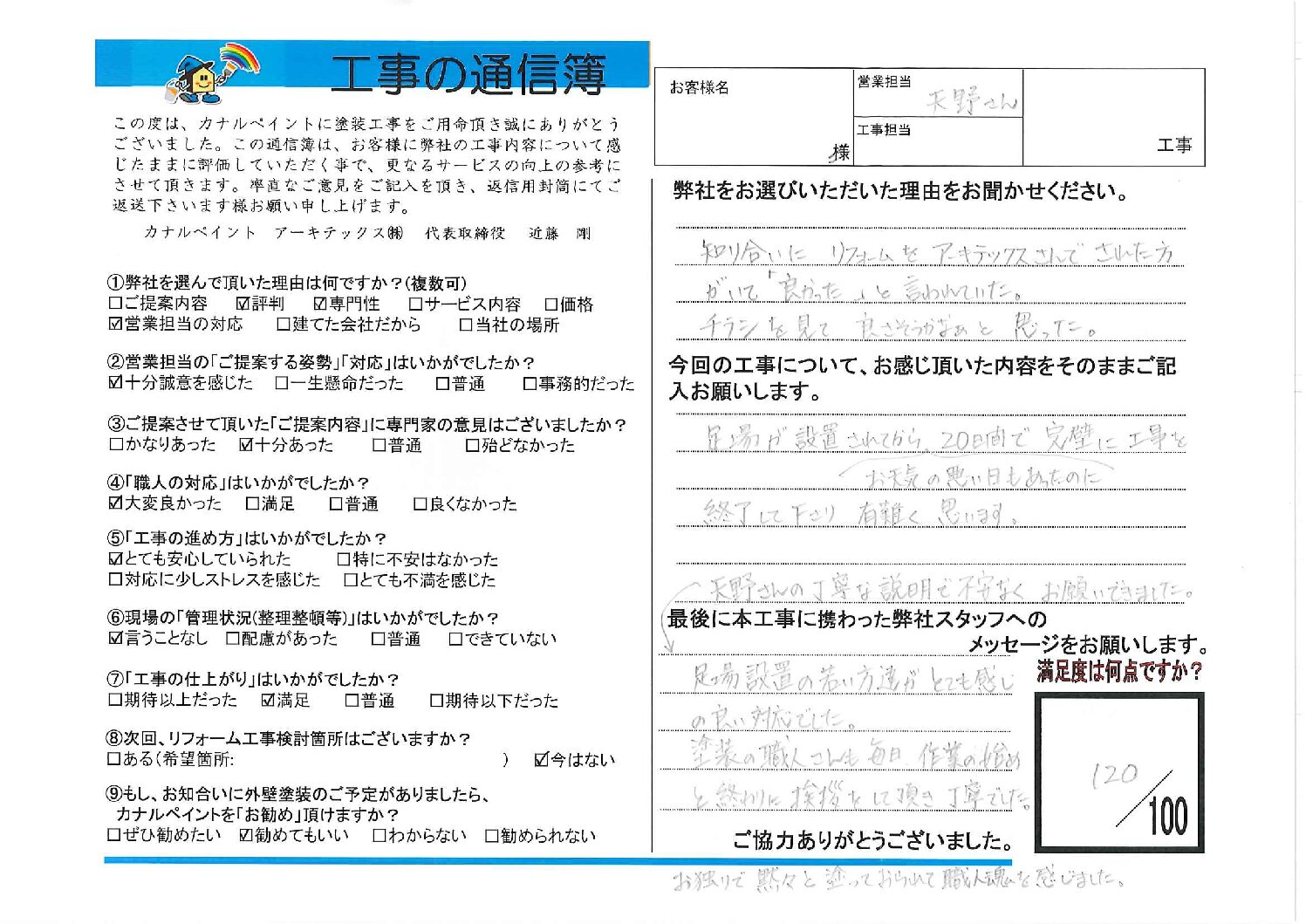 今回の工事について、お感じ頂いた内容をそのままご記入お願いします。