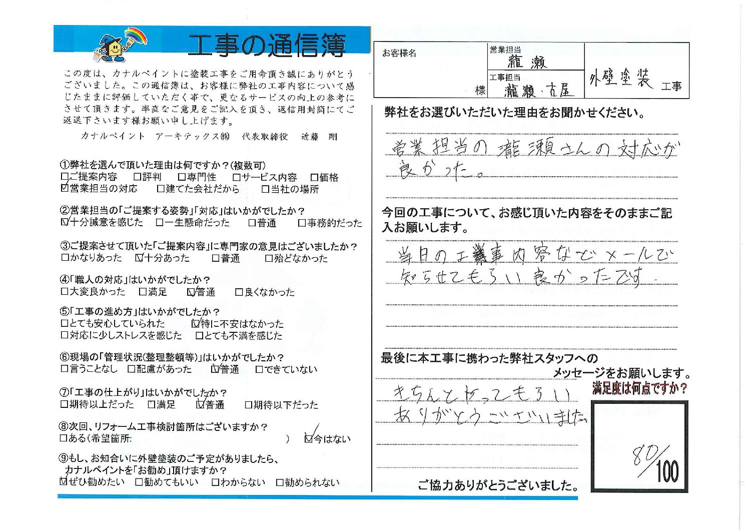 営業担当の瀧瀬さんの対応が良かった。