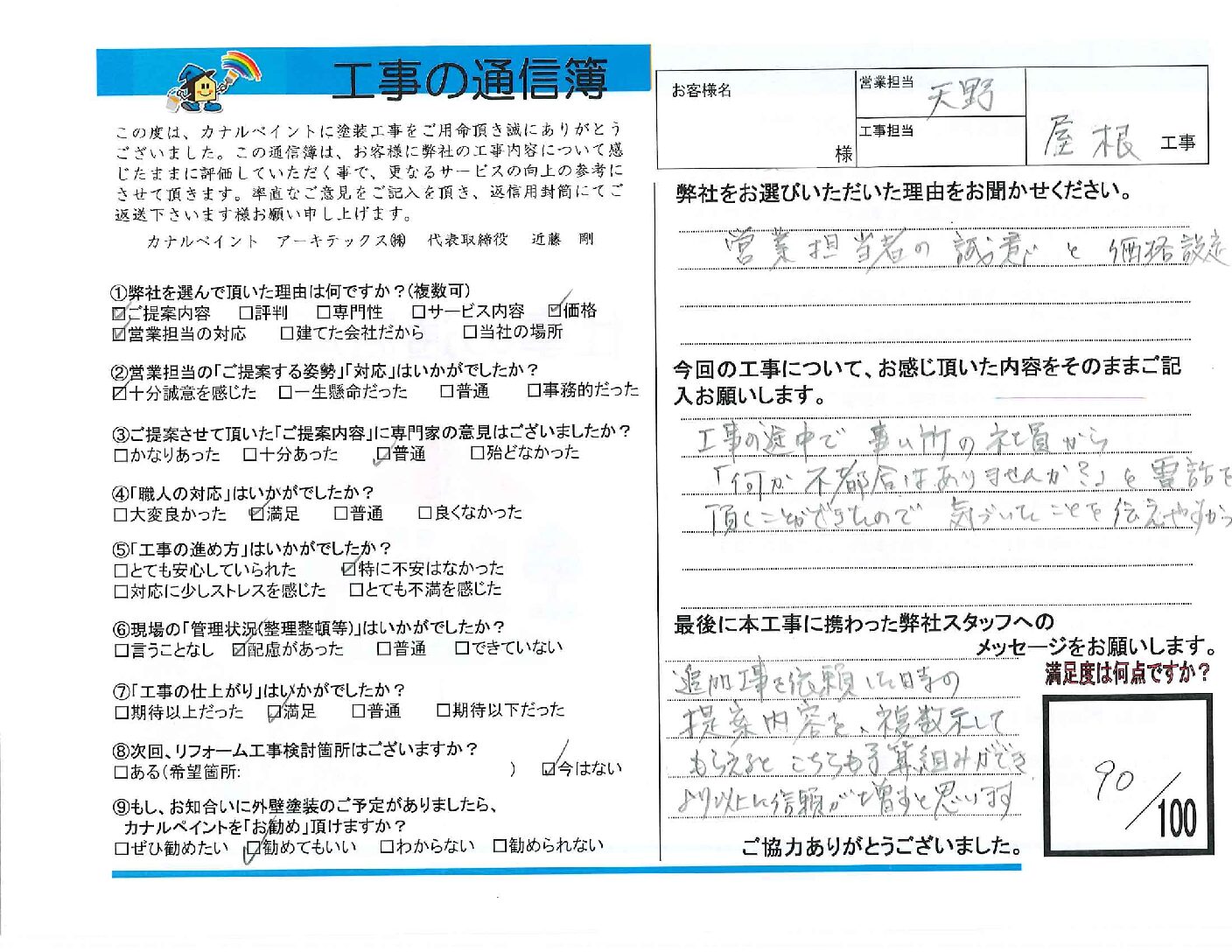 今回の工事について、お感じ頂いた内容をそのままご記入お願いします。