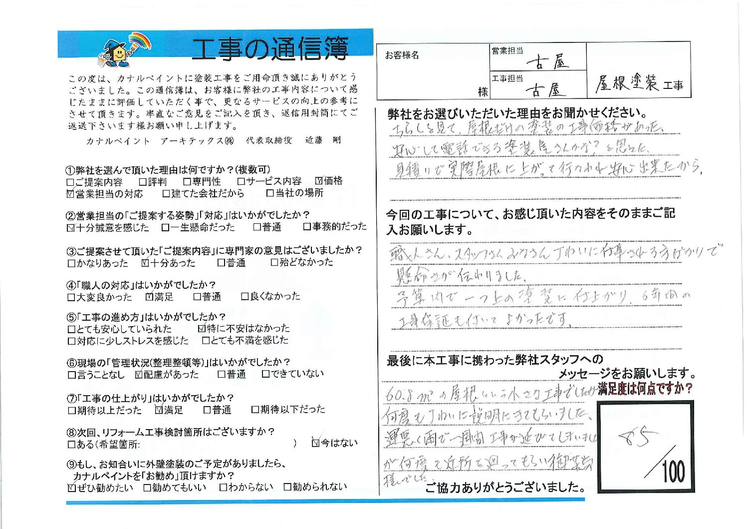 60.8㎡の屋根という小さな工事でしたが何度も丁寧に説明にきてもらいました。