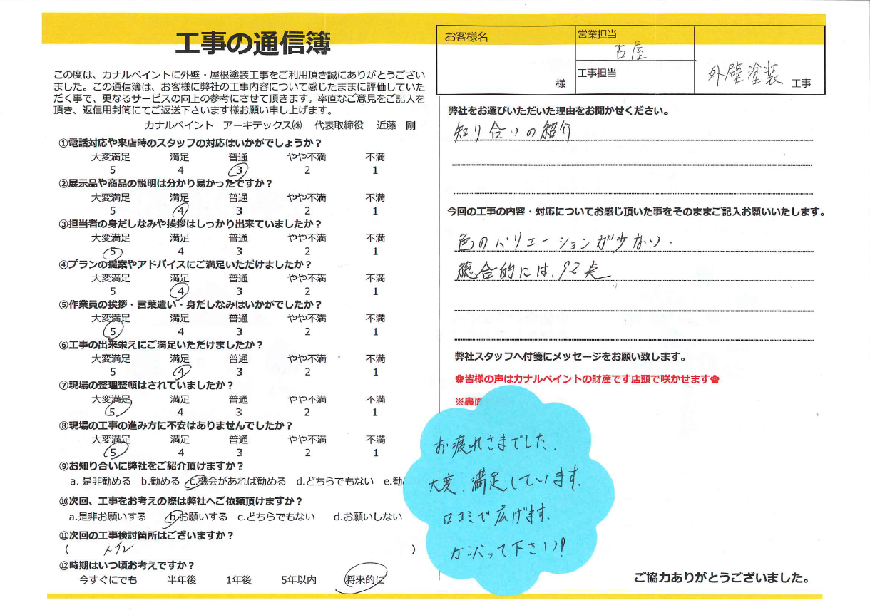 今回の工事の内容・対応についてお感じ頂いた事をそのままご記入お願いいたします。
