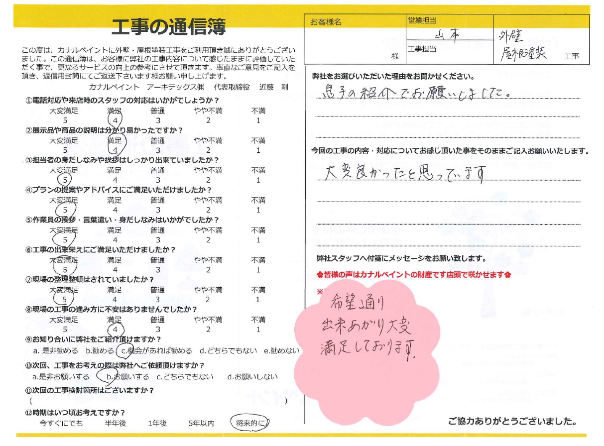 お客様より工事に関わったスタッフへのメッセージ