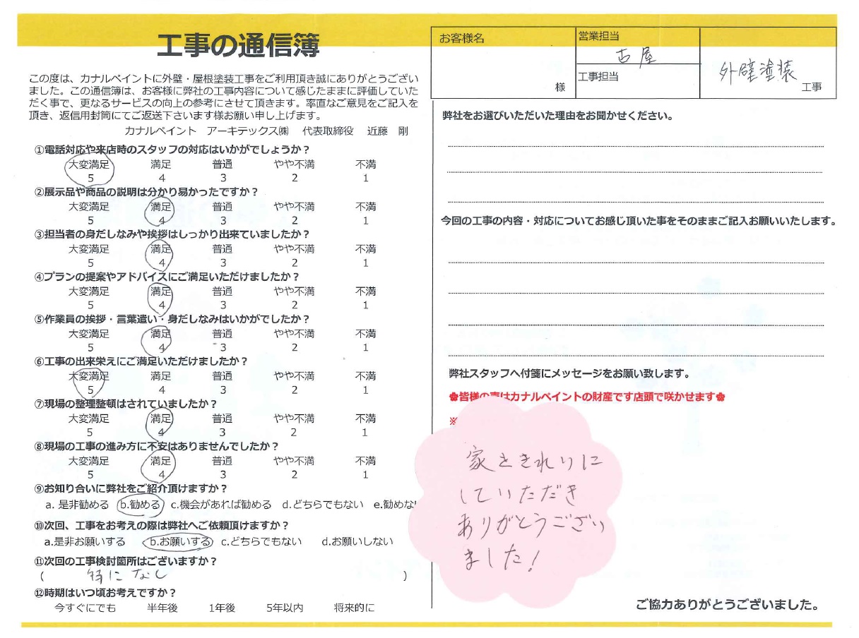 お客様より工事に関わったスタッフへのメッセージ