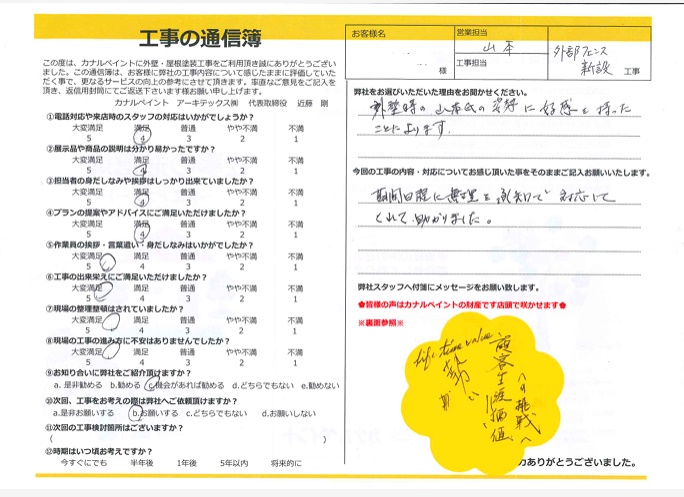 外壁時の山本氏の姿勢に好感を持ったことによります。