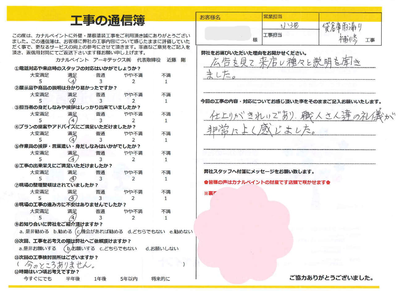仕上がりがきれいであり、職人さん達の礼儀が非常によく感じました。