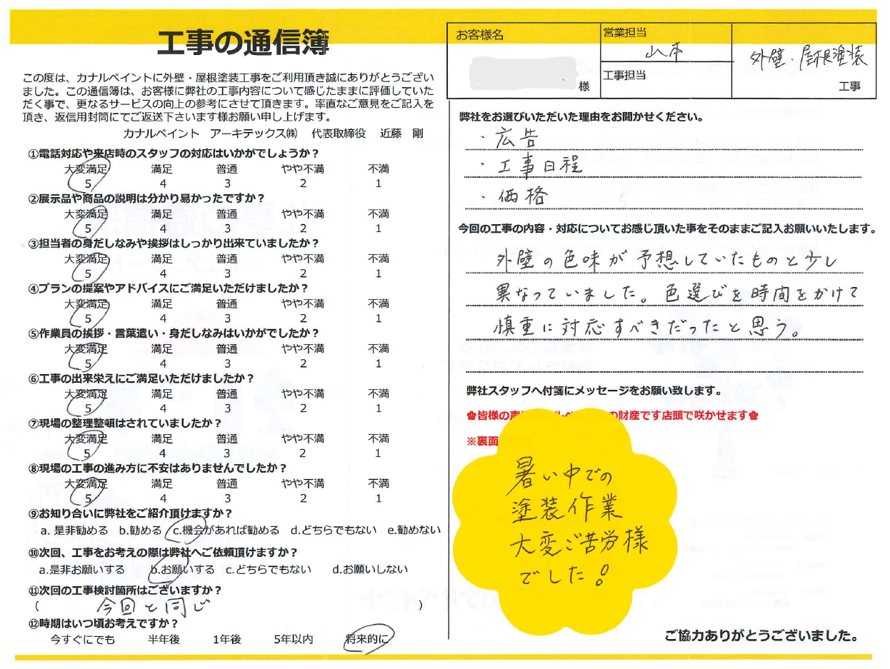 お客様より工事に関わったスタッフへのメッセージ