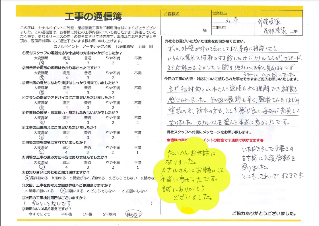 その後の展開も早く、監督さんをはじめ塗装の方、防水の方もとても感じ良く毎日が充実していました。