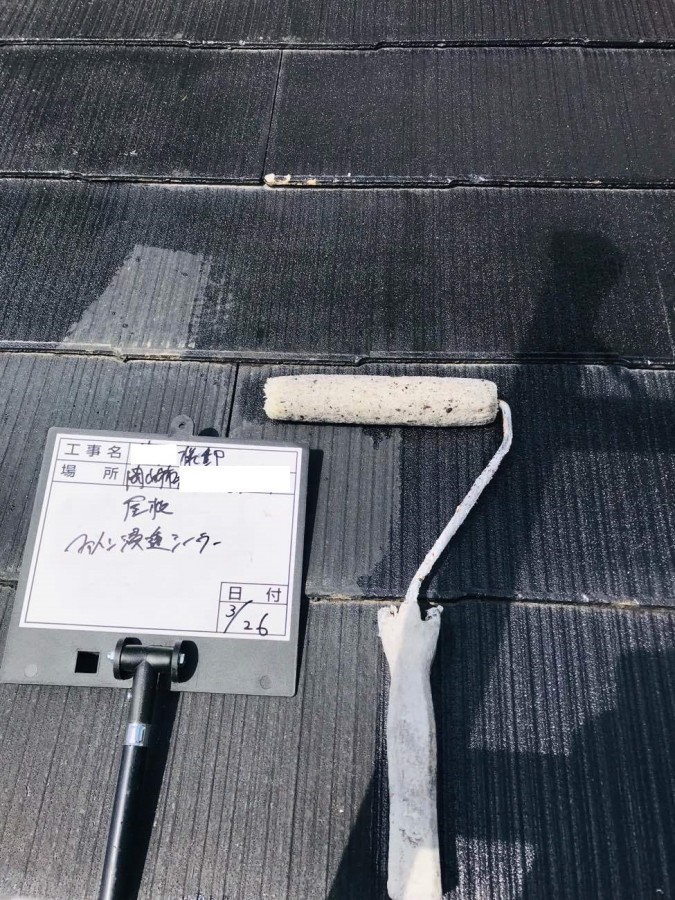 上塗り塗料と屋根材の接着を良くするためにシーラーを施工します。