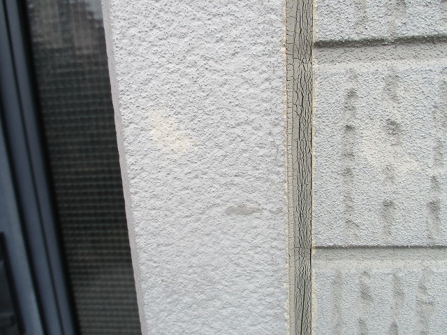 外壁目地のコーキングの痩せが確認できます。