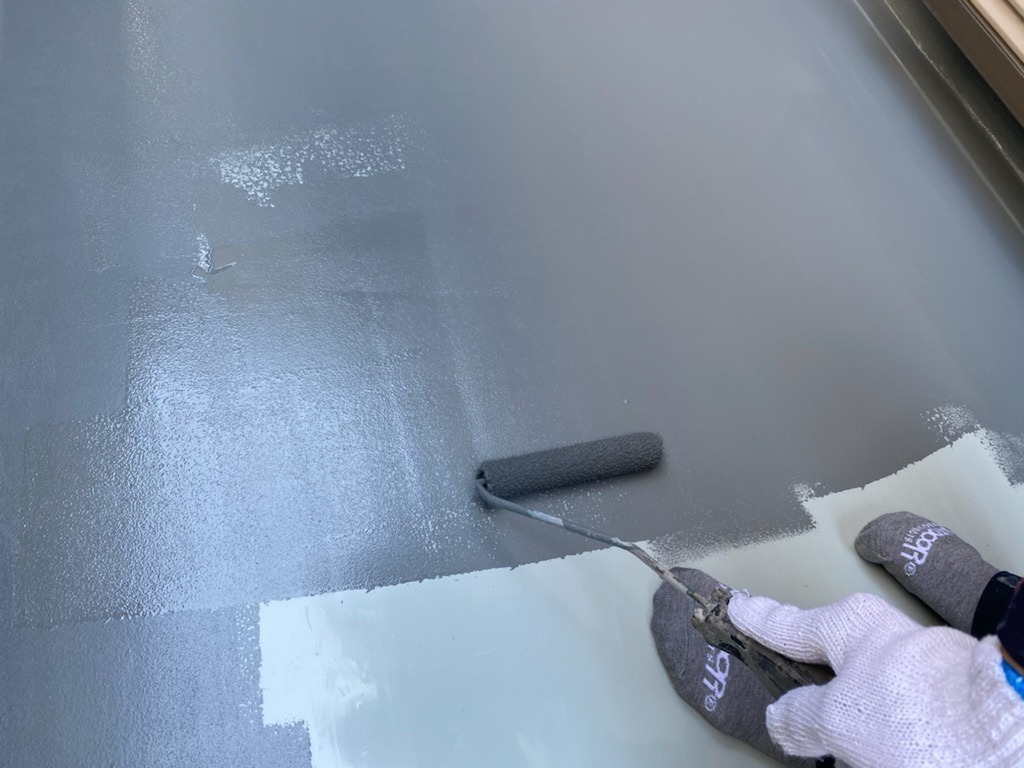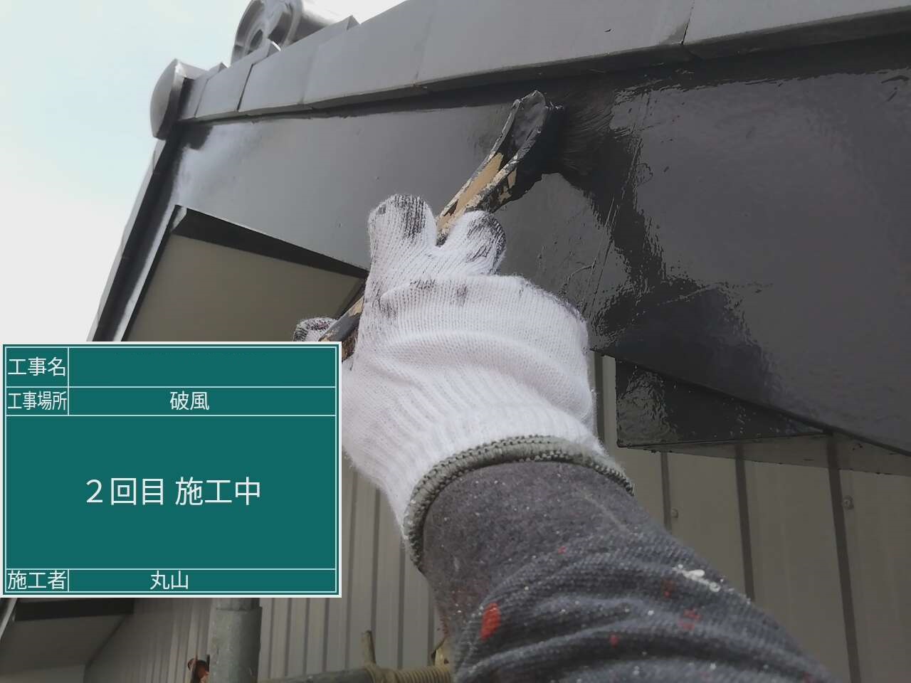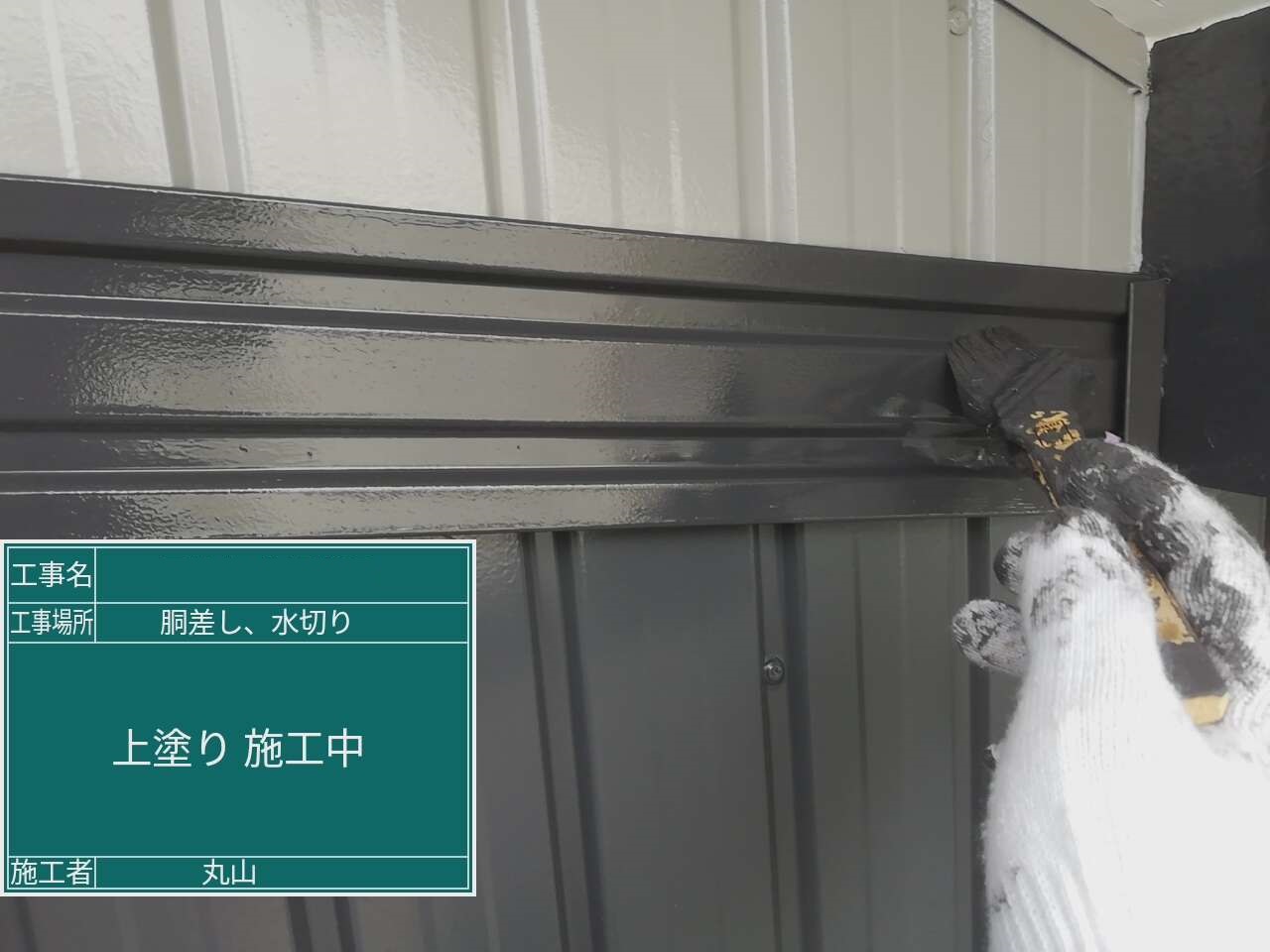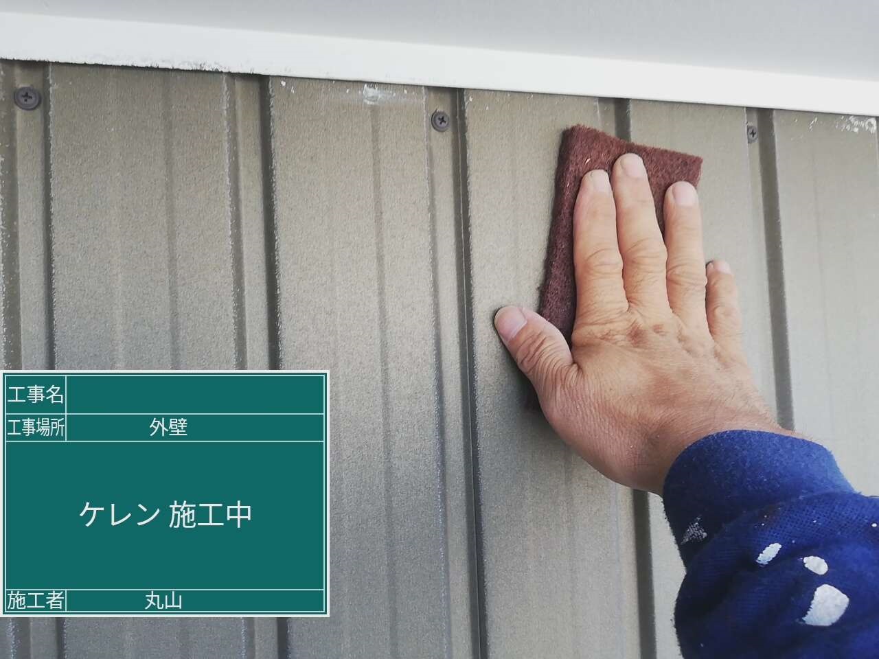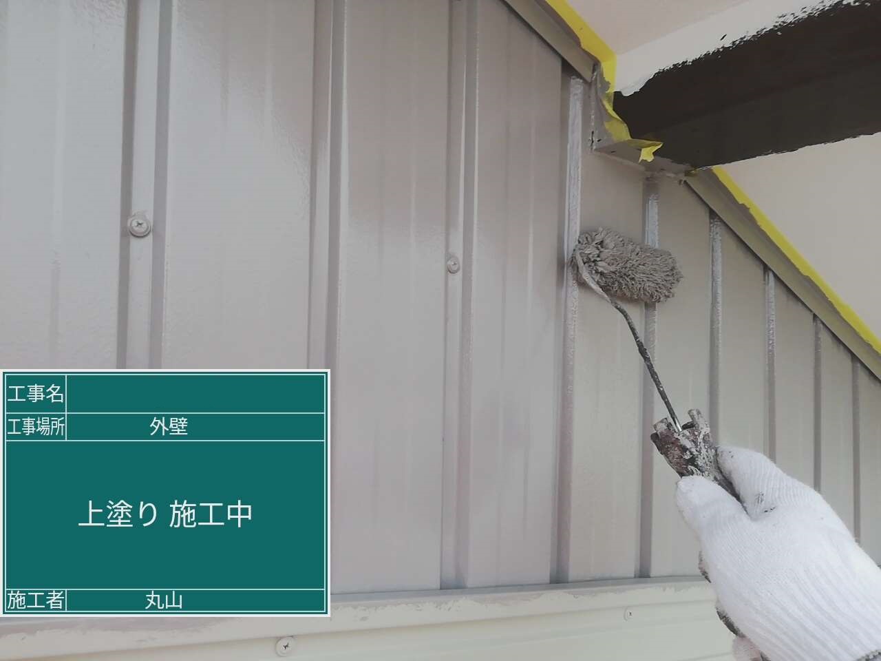 既存外壁材に合わせて弱溶剤の塗料で施工しました。