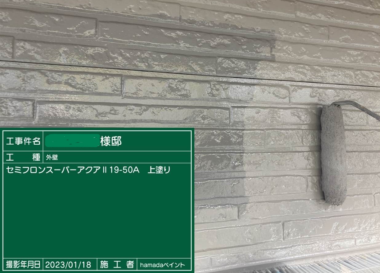 | 外壁塗料 | 塗料名:色番号・・・セミフロンスーパーアクアⅡ 19-50A |