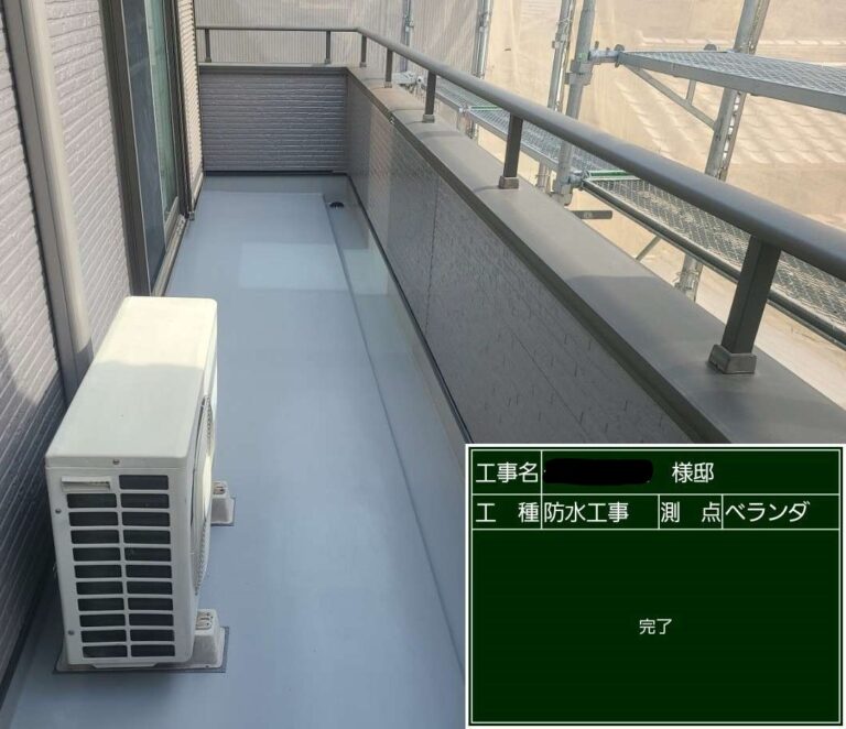 ・ベランダ防水工事(クロス入り密着工法、計4回塗り)