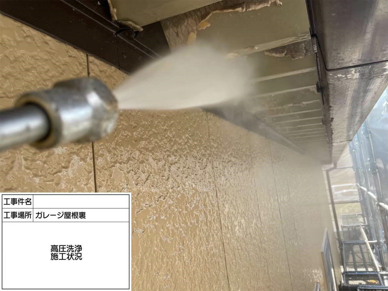 ガレージ外壁 高圧洗浄