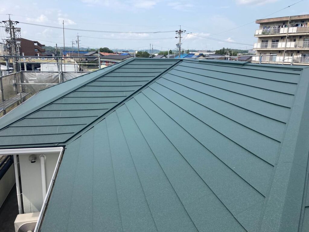 | 屋根塗料 | スーパーガルテクト(カバー工法):色番号・・・Sシェイド モスグリーン |