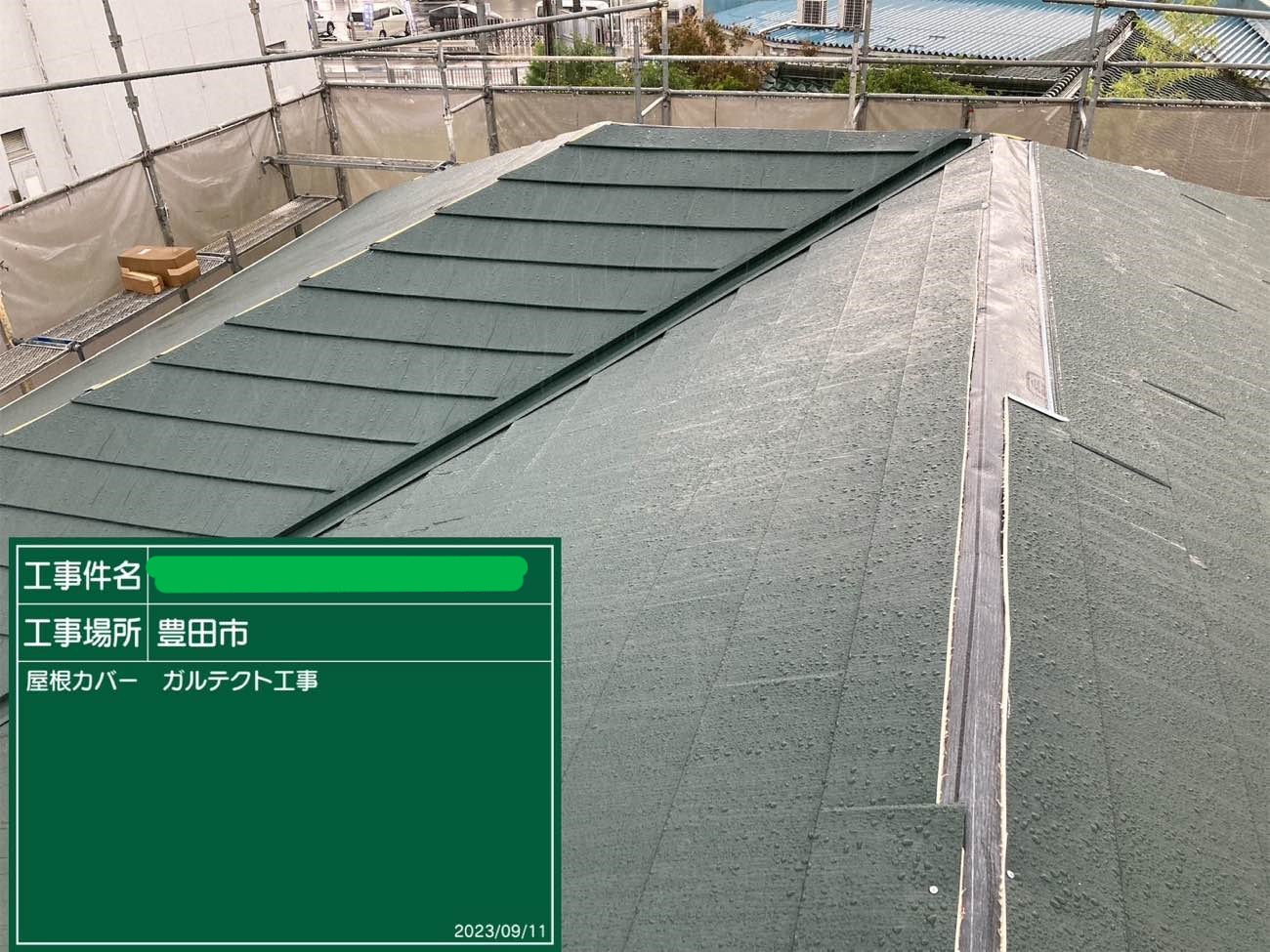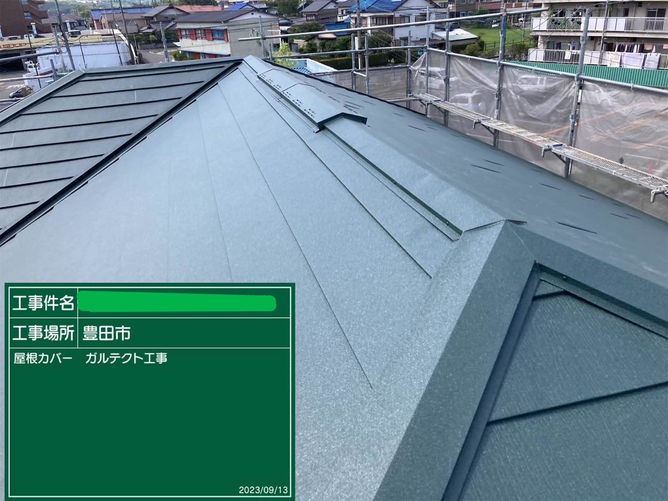| 屋根塗料 | スーパーガルテクト(カバー工法):色番号・・・Sシェイド モスグリーン |