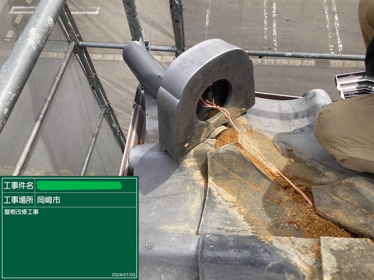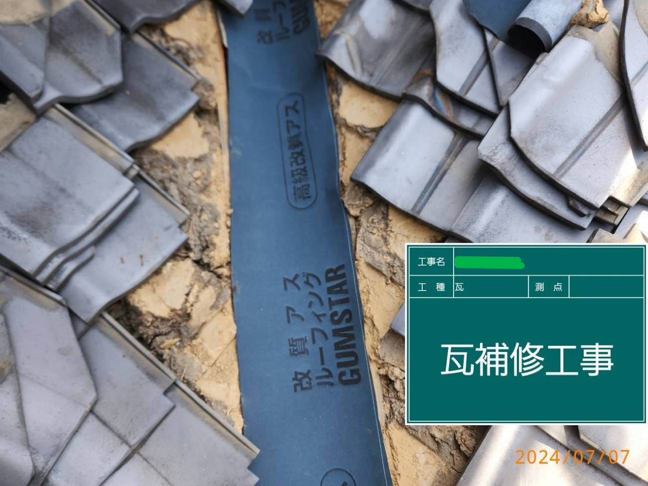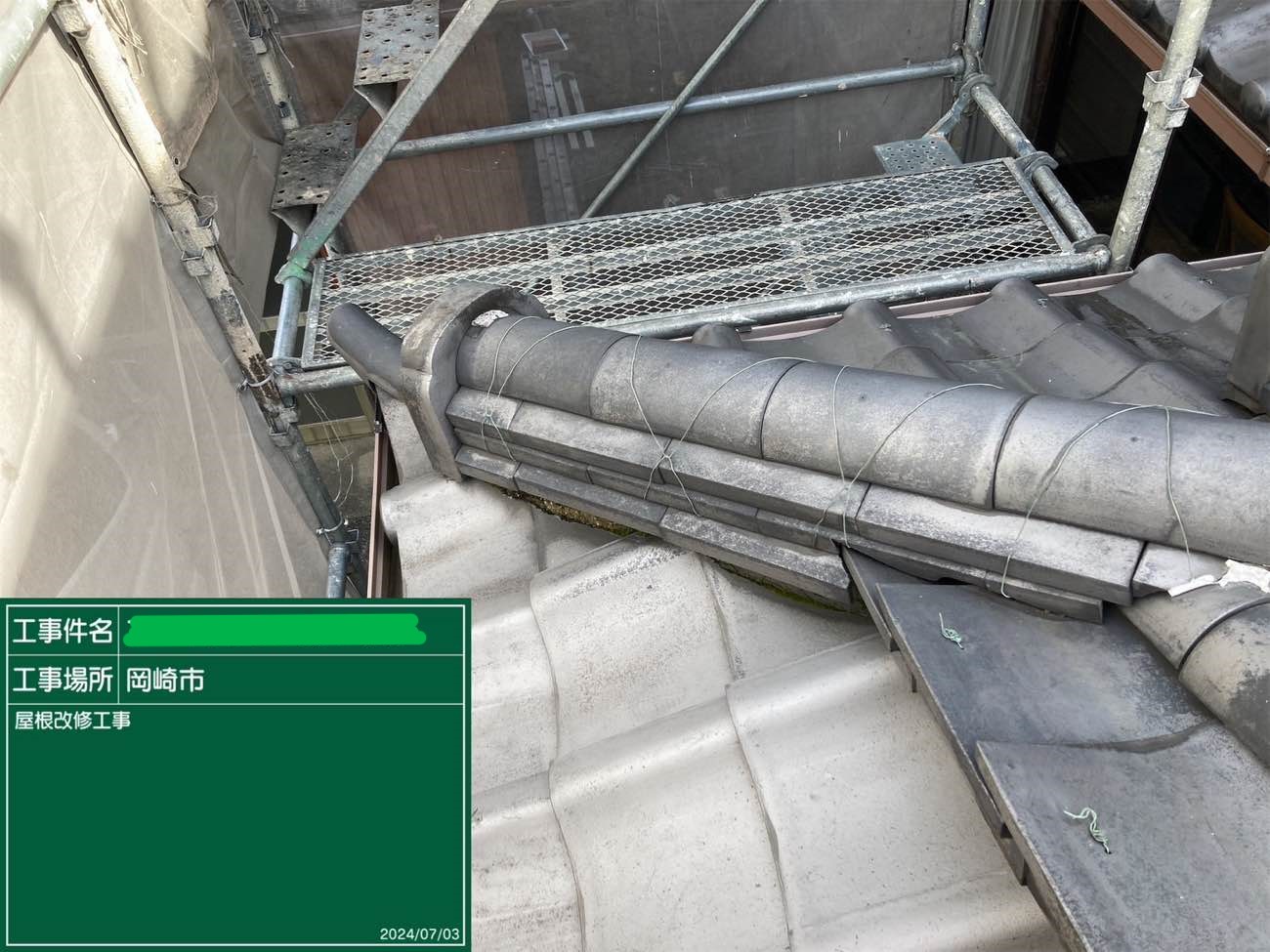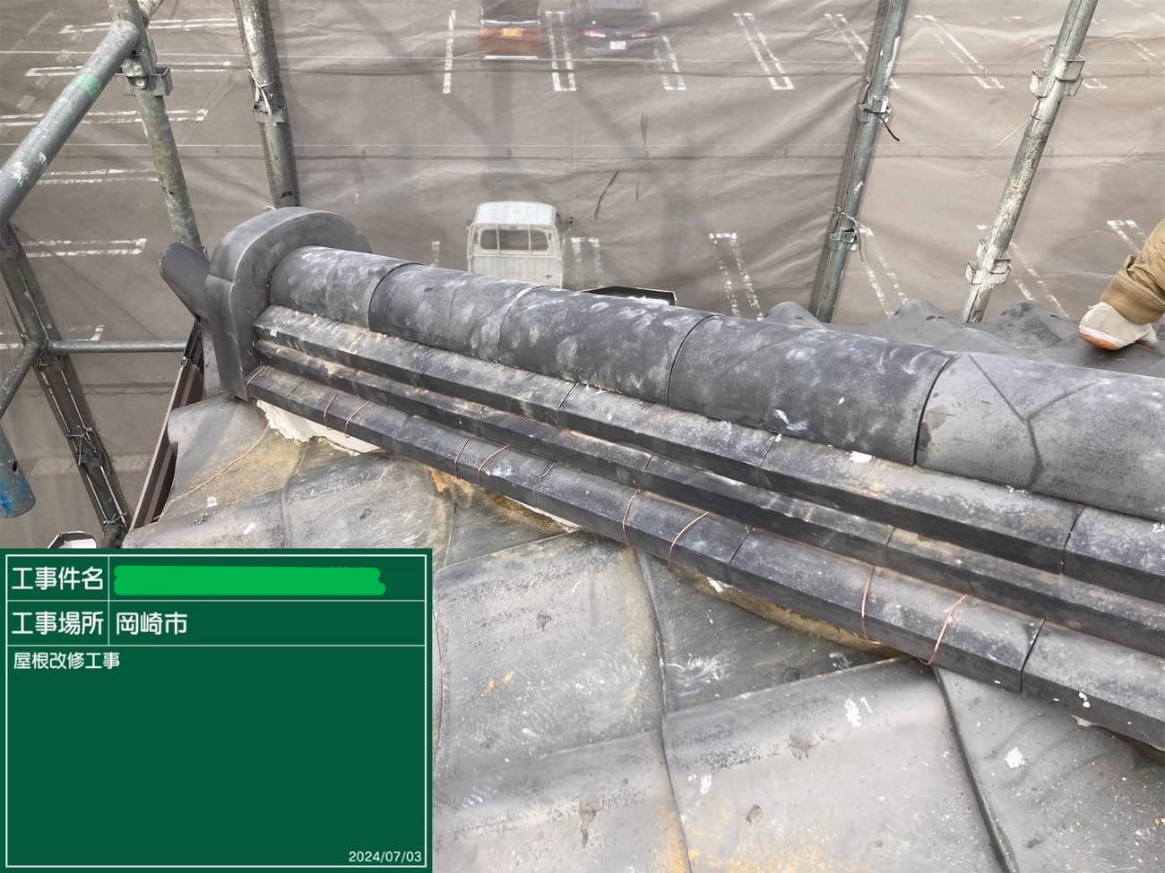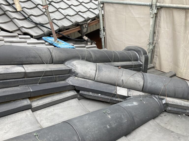 粘土や泥を接着剤として棟瓦を固定する湿式工法で、一部の瓦の葺き替え工事を行いました。