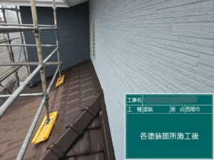 | 外壁塗料 | セミフロンスーパーマイルドⅡ(白色面) :色番号・・・65-80B 5分ツヤ (ベージュ面):色番号・・・65-40B 5分ツヤ |