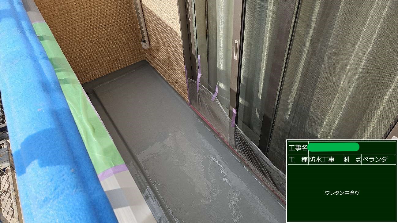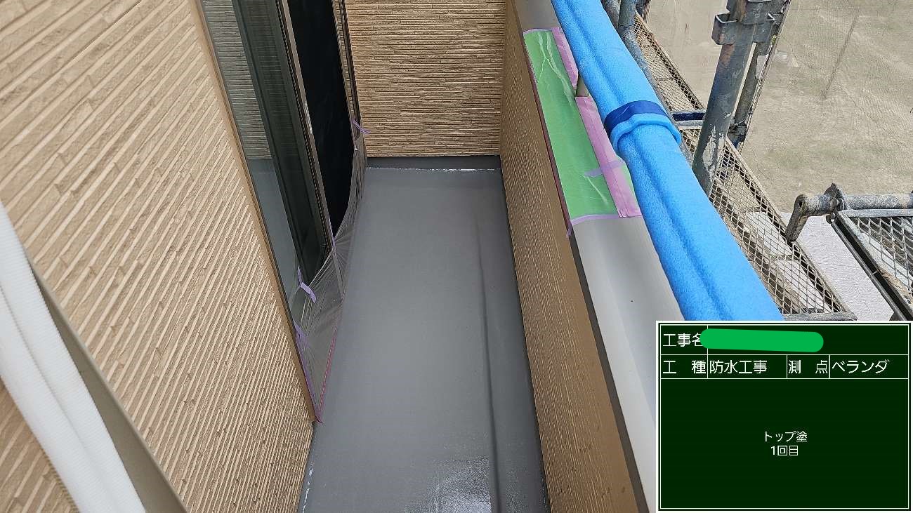 ベランダ防水工事 トップコート仕上げ2回目完了